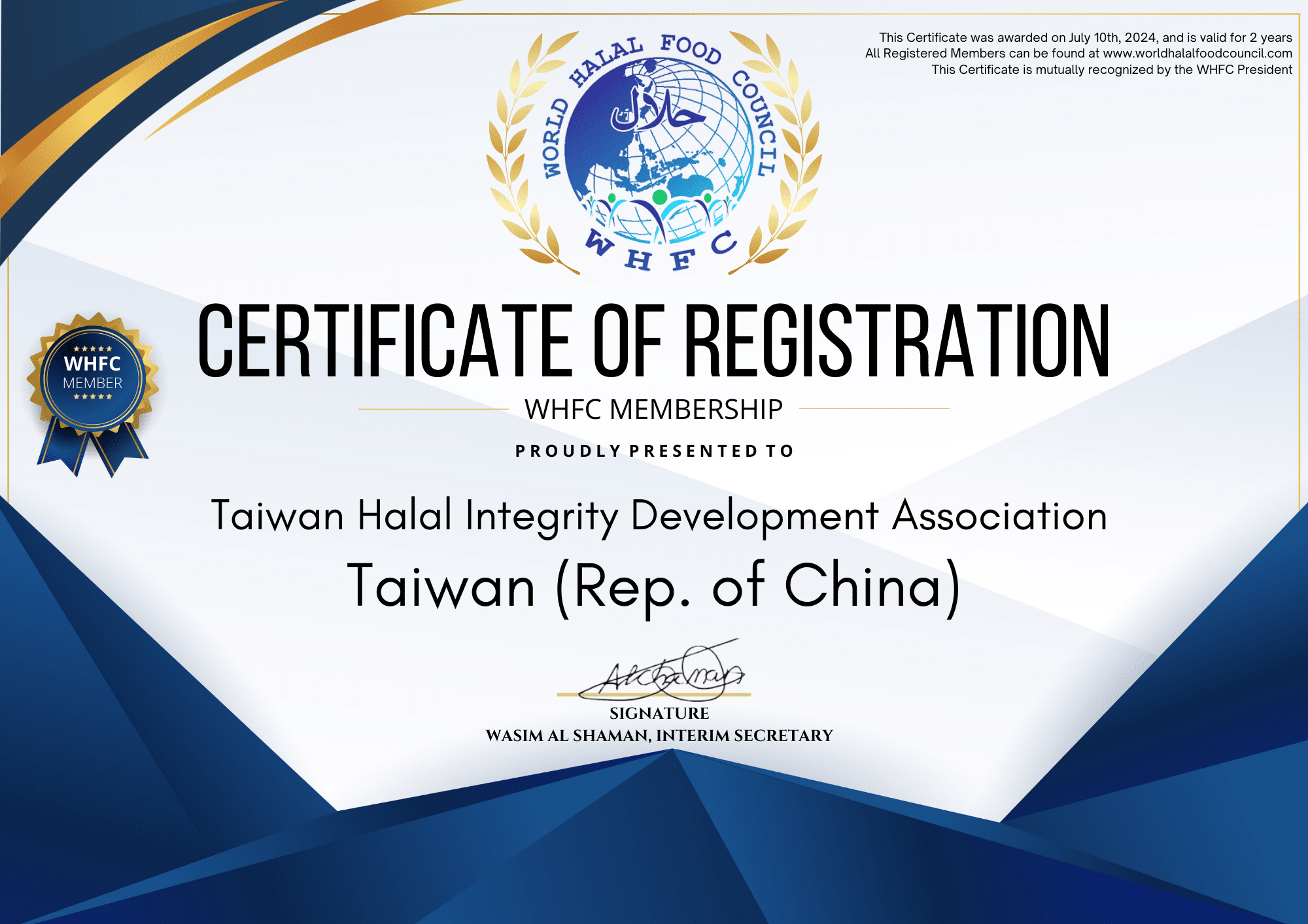 The World Halal Food Council (WHFC) was founded in 1999 and later renamed WHC. In 2011, it reverted to its original name, WHFC. Membership requires recognition by Indonesia's Majelis Ulama Indonesia (MUI). Our association holds WHFC membership (membership certificate). Since 2011, Mr. Chao Xihong, our Executive Director and former Deputy Secretary-General, has been elected as the WHFC Chairman for the Asia region and has served in this position to date.